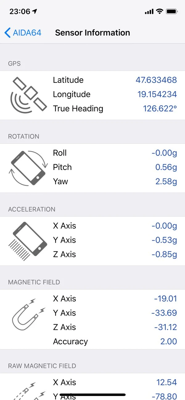 - 🧲 Датчики — акселерометр, гироскоп, магнитометр, барометр и их показания в реальном времени.